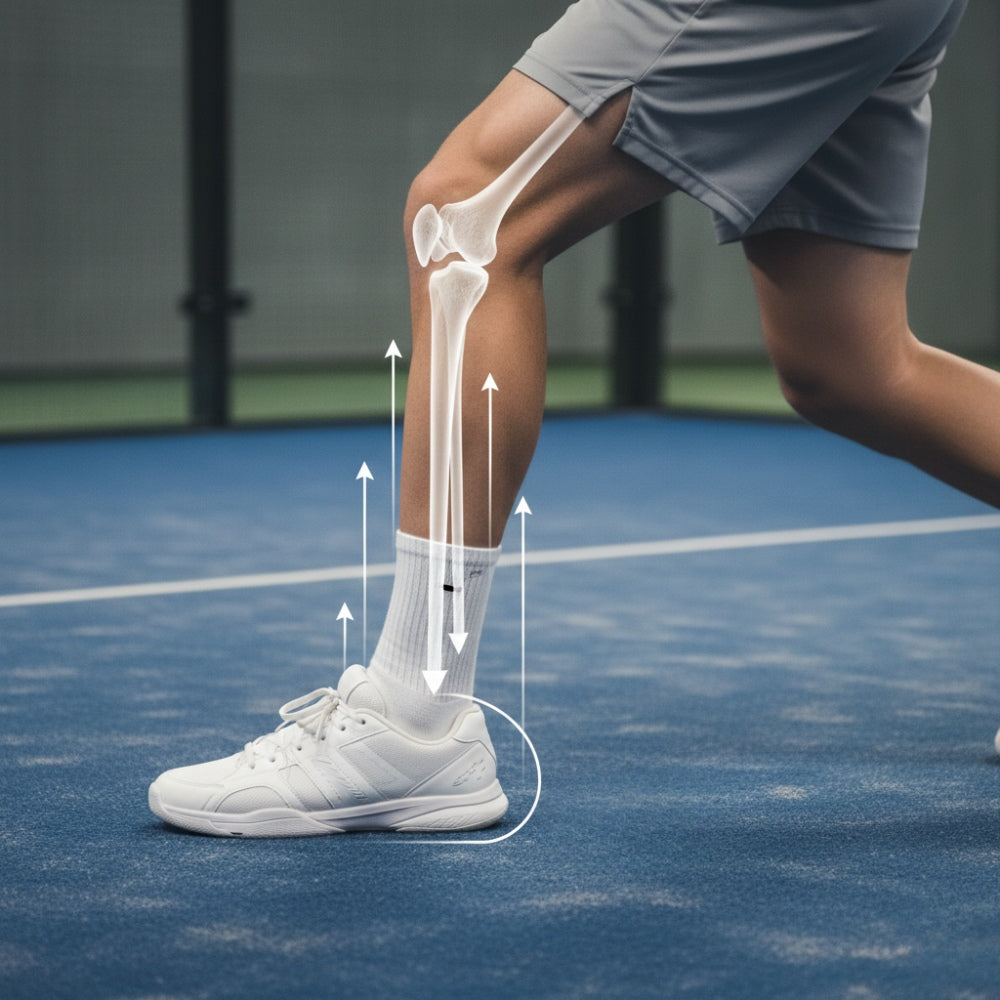 Chaque appui, chaque pivot, chaque freinage commence par le pied, puis remonte mécaniquement vers la cheville et le genou.