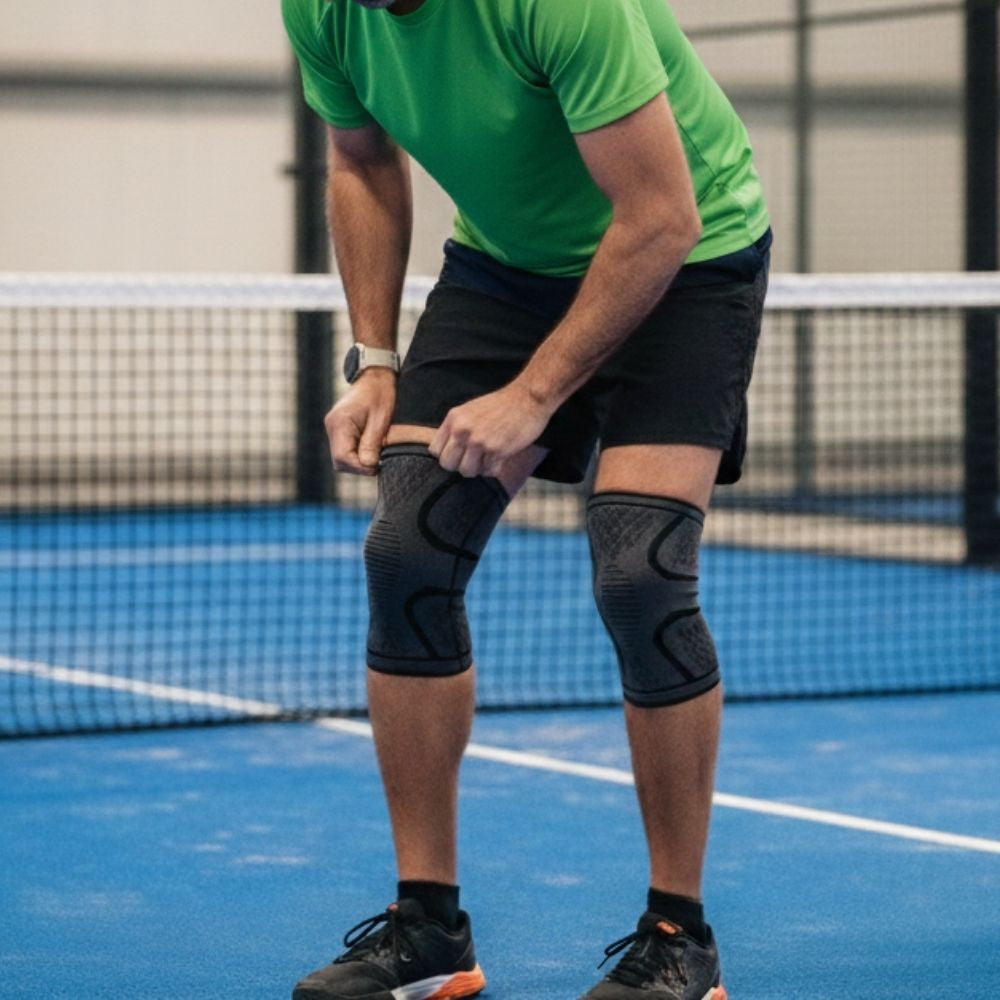 Au padel, ton genou encaisse pivots, changements de direction et appuis explosifs. Sans soutien, ça finit en tiraillements, gonflements et douleurs qui coupent ton intensité.