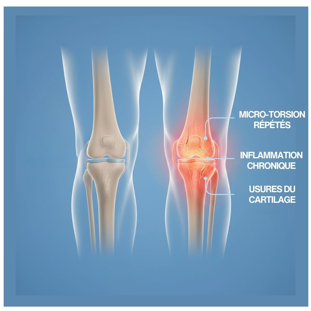 Les chocs répétés compriment le cartilage et accélèrent son usure naturelle.
